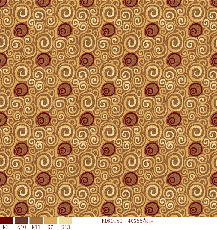 Nylon printed carpets has the advantages in color brightness , good resilience, long usage life, good resilience, easy cleaning and so on. It is favored by high-end hotels.
