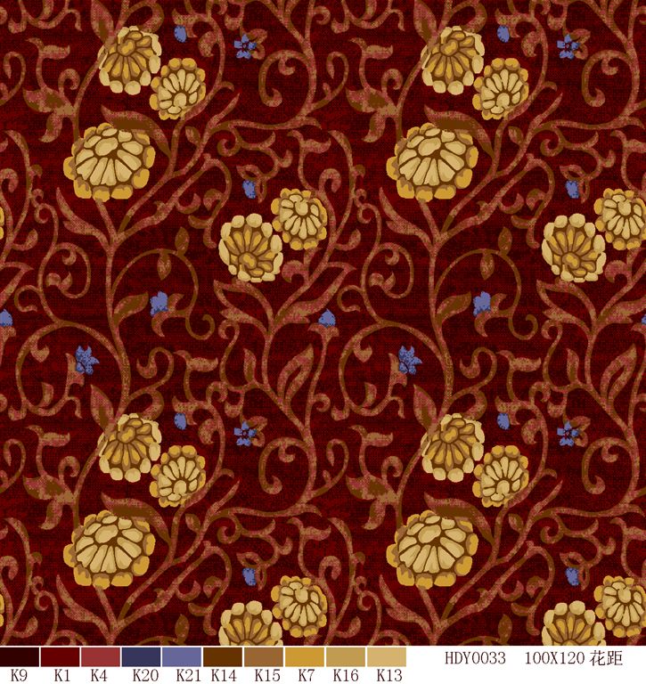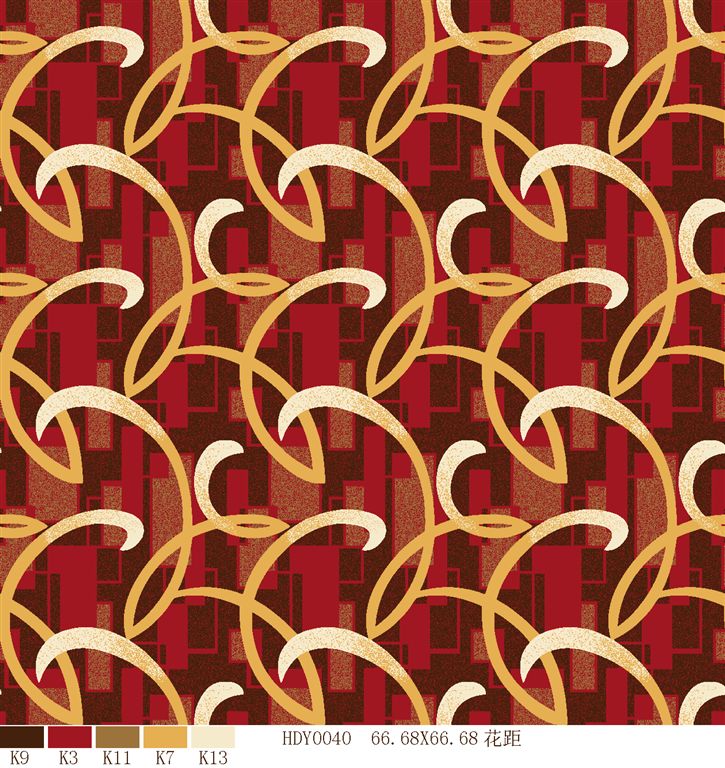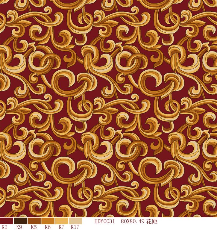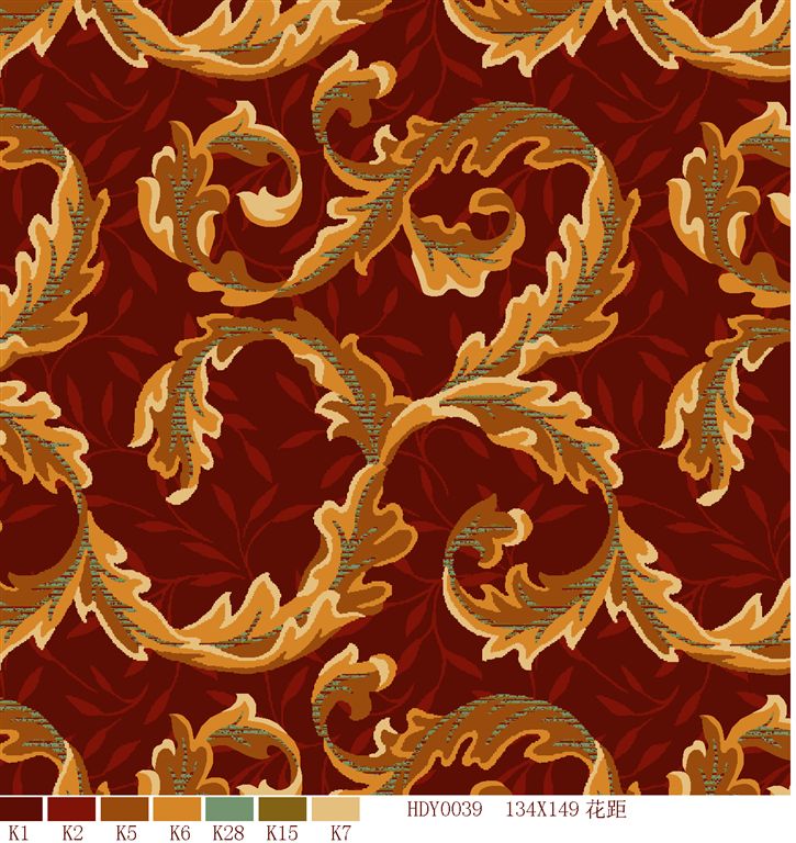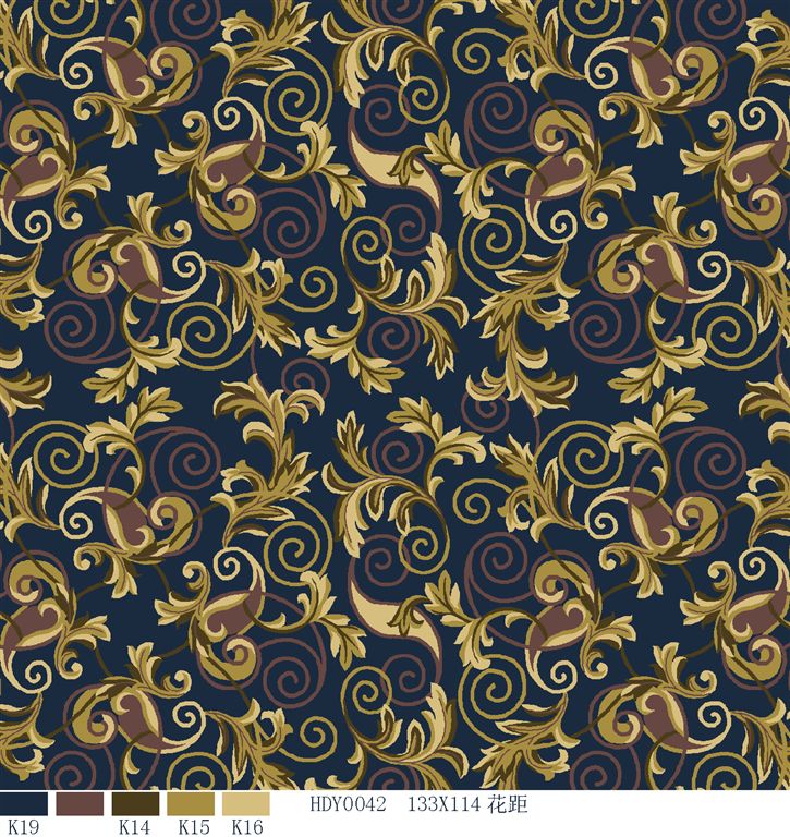 Nylon printed carpets has the advantages in color brightness , good resilience, long usage life, good resilience, easy cleaning and so on. It is favored by high-end hotels.