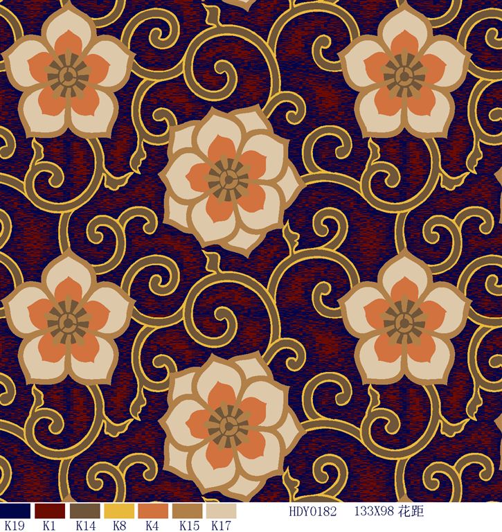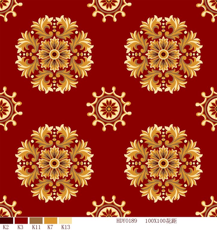 Nylon printed carpets has the advantages in color brightness , good resilience, long usage life, good resilience, easy cleaning and so on. It is favored by high-end hotels.