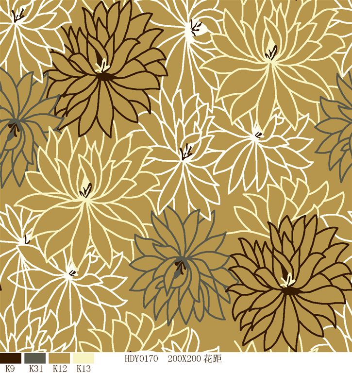 尼龍印花是公司較早開發(fā)和成熟的產(chǎn)品, 目前我們對各類克重和寬幅的尼龍印花均有坯毯備貨,可以隨時生產(chǎn),隨時交貨, 如果從公司圖庫中選擇圖案生產(chǎn), 交貨期會更快。