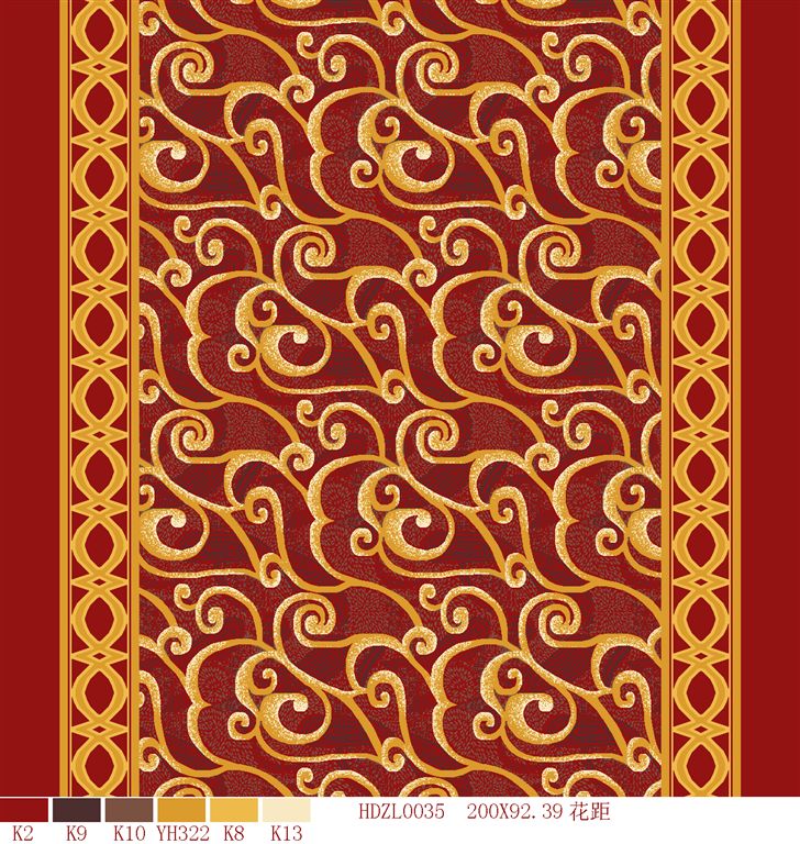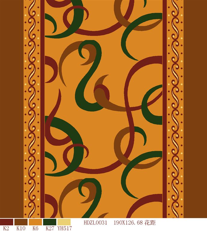Nylon printed carpets has the advantages in color brightness , good resilience, long usage life, good resilience, easy cleaning and so on. It is favored by high-end hotels.