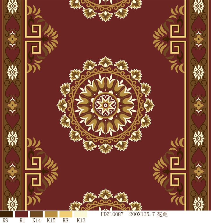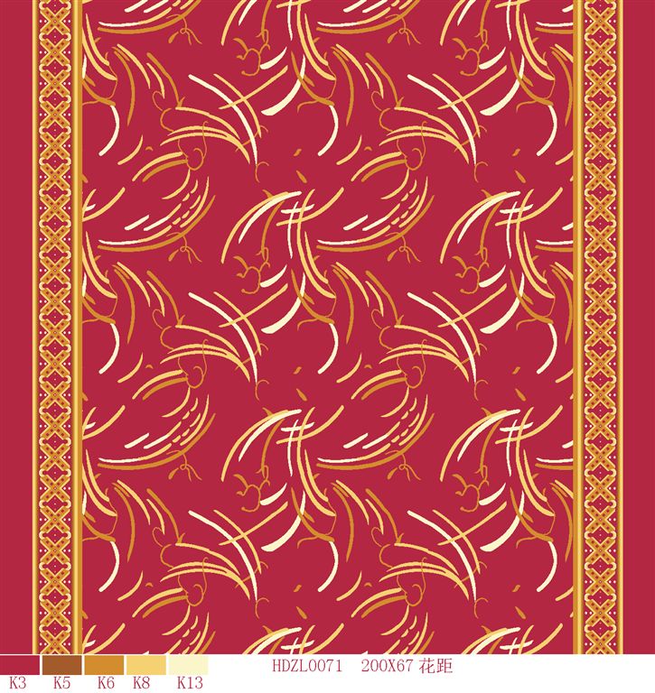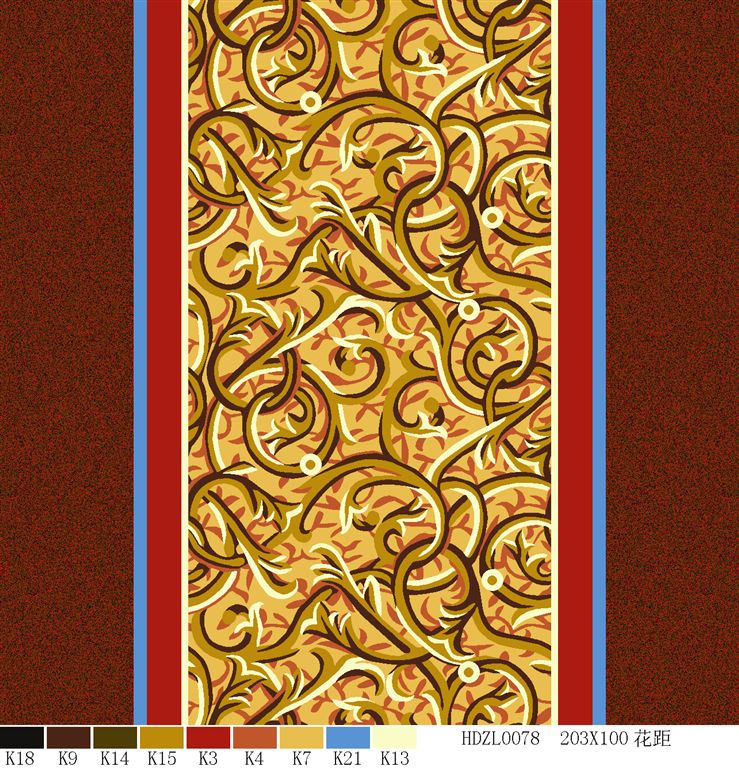 Nylon printed carpets has the advantages in color brightness , good resilience, long usage life, good resilience, easy cleaning and so on. It is favored by high-end hotels.