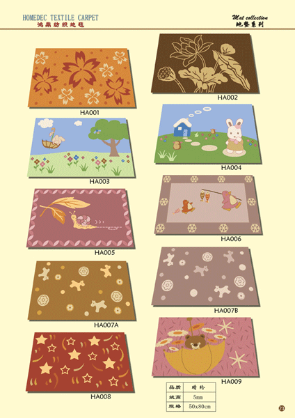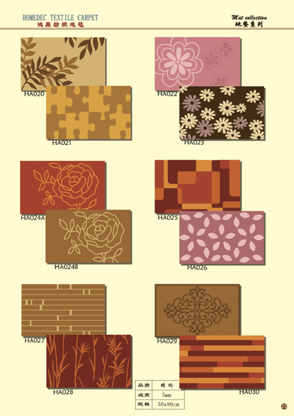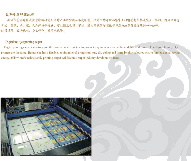It is the earliest developed mature products, now we have all kinds of inventory of nylon 6 carpet in all different kind of weight and width available for printing, this makes us be able to serve our customers in quick delivery especially if the pattern and design collected from our pattern galleries.