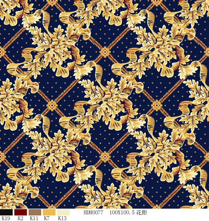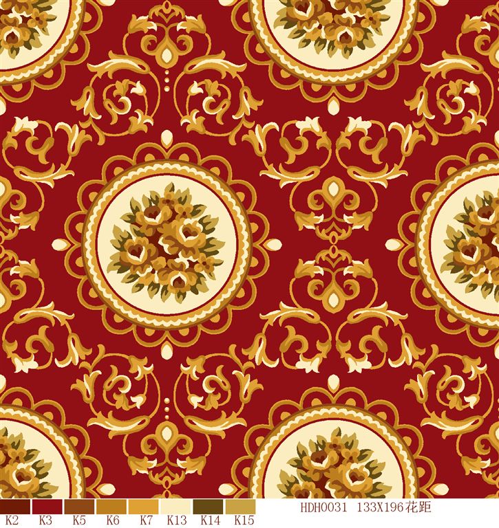 Nylon printed carpets has the advantages in color brightness , good resilience, long usage life, good resilience, easy cleaning and so on. It is favored by high-end hotels.