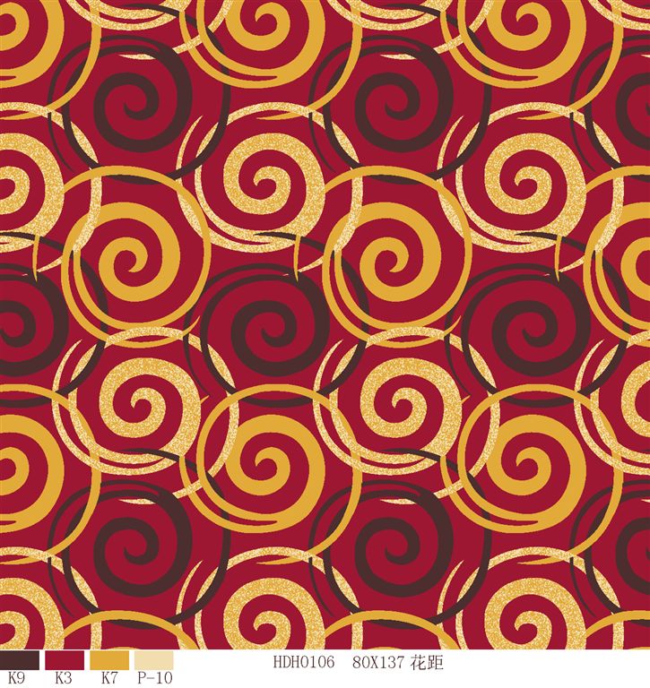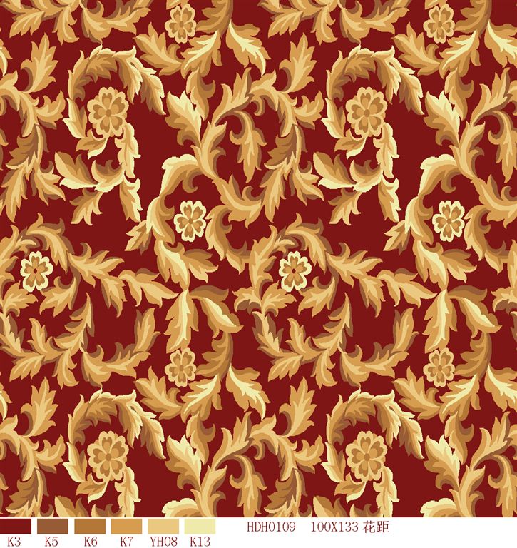 Nylon printed carpets has the advantages in color brightness , good resilience, long usage life, good resilience, easy cleaning and so on. It is favored by high-end hotels.