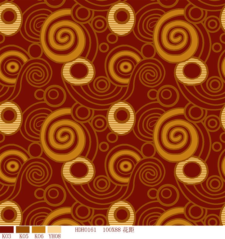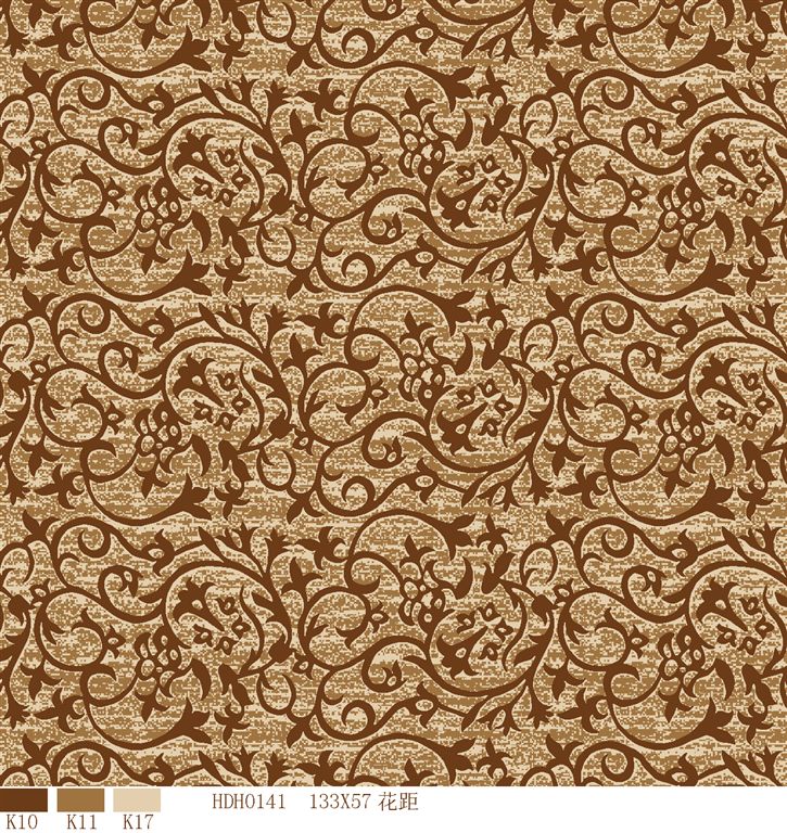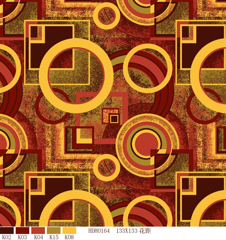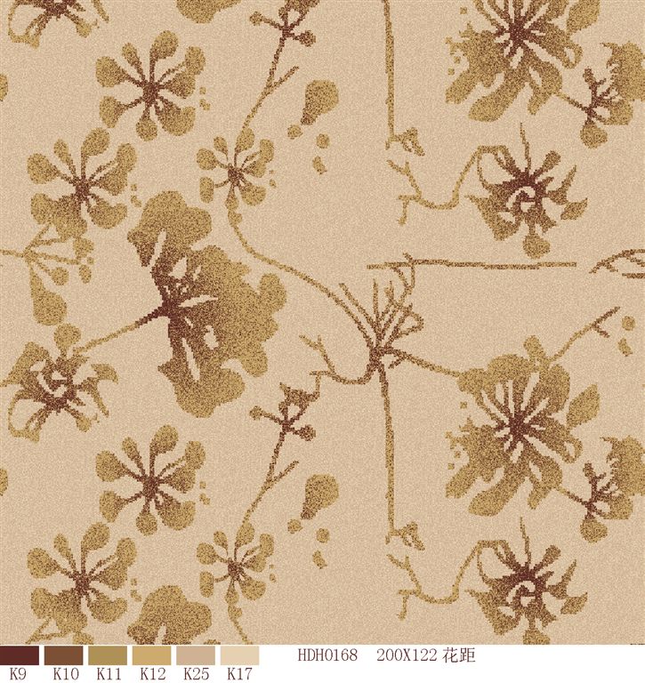 Nylon printed carpets has the advantages in color brightness , good resilience, long usage life, good resilience, easy cleaning and so on. It is favored by high-end hotels.