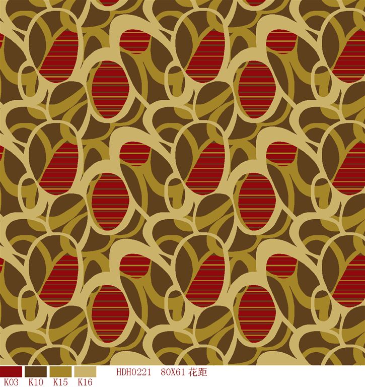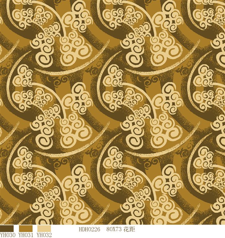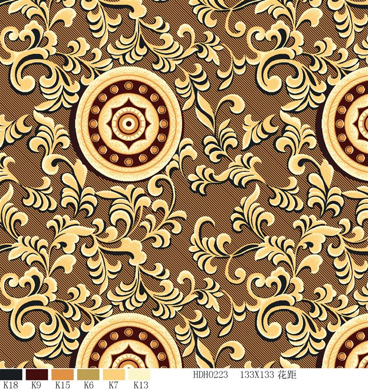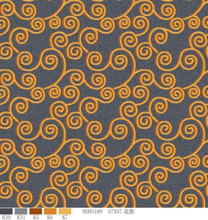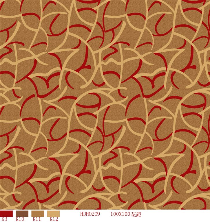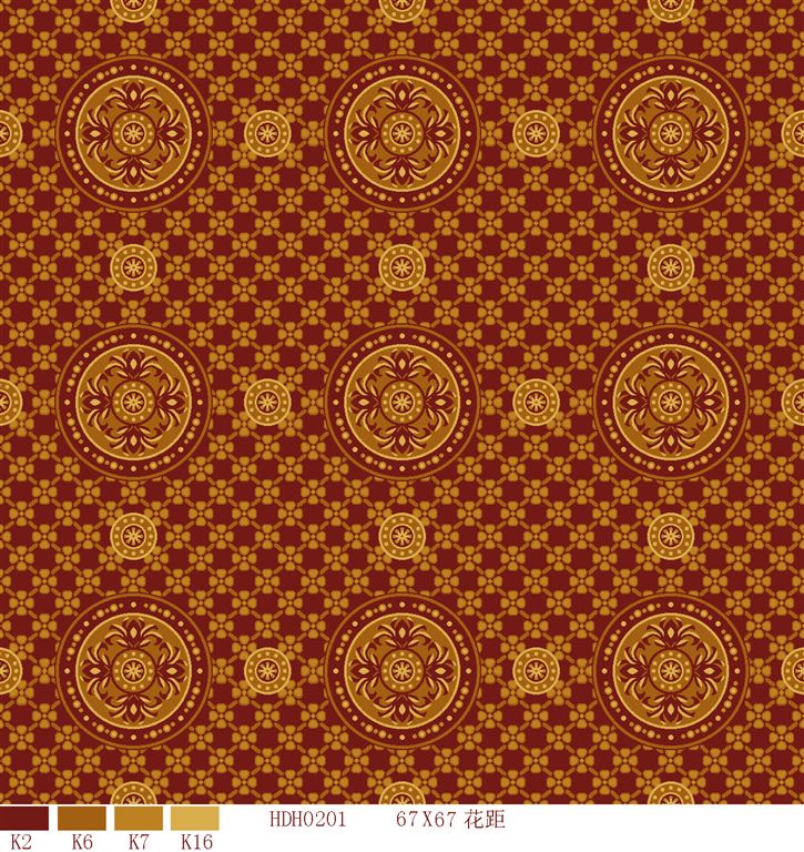 Nylon printed carpets has the advantages in color brightness , good resilience, long usage life, good resilience, easy cleaning and so on. It is favored by high-end hotels.