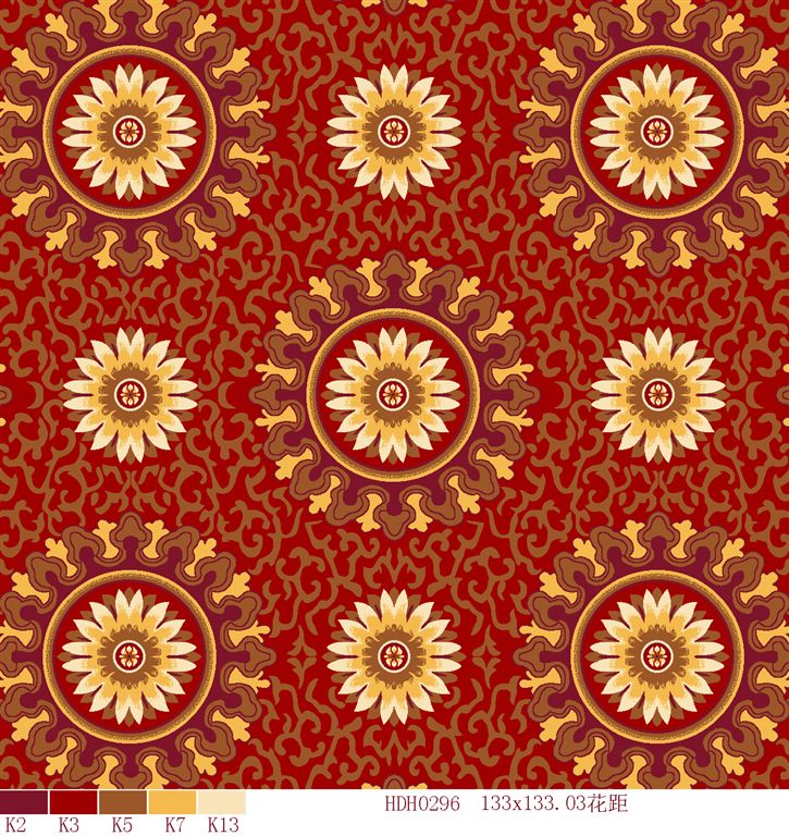 It is the earliest developed mature products, now we have all kinds of inventory of nylon 6 carpet in all different kind of weight and width available for printing, this makes us be able to serve our customers in quick delivery especially if the pattern and design collected from our pattern galleries.