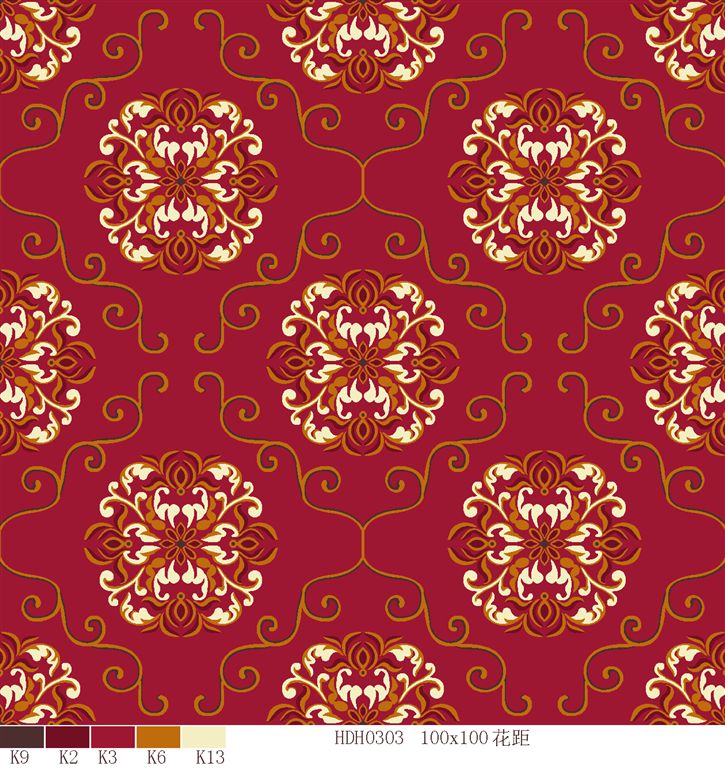 Nylon printed carpets has the advantages in color brightness , good resilience, long usage life, good resilience, easy cleaning and so on. It is favored by high-end hotels.